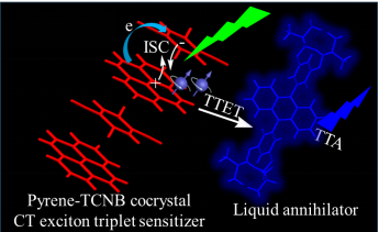 图.电荷转移激子敏化的三重态-三重态湮灭上转换示意图