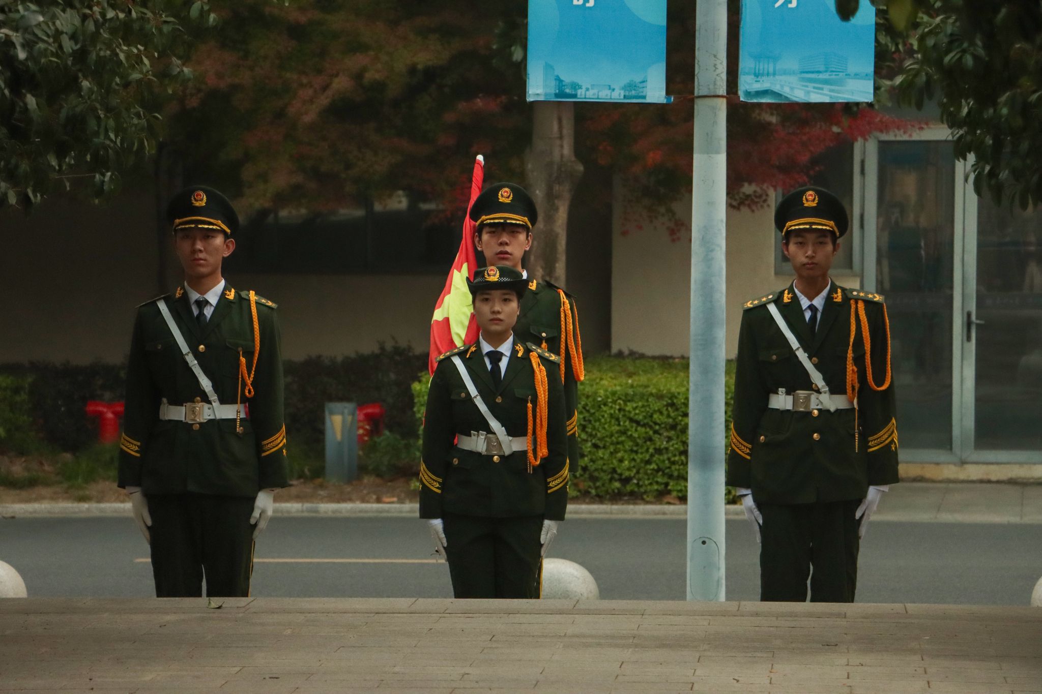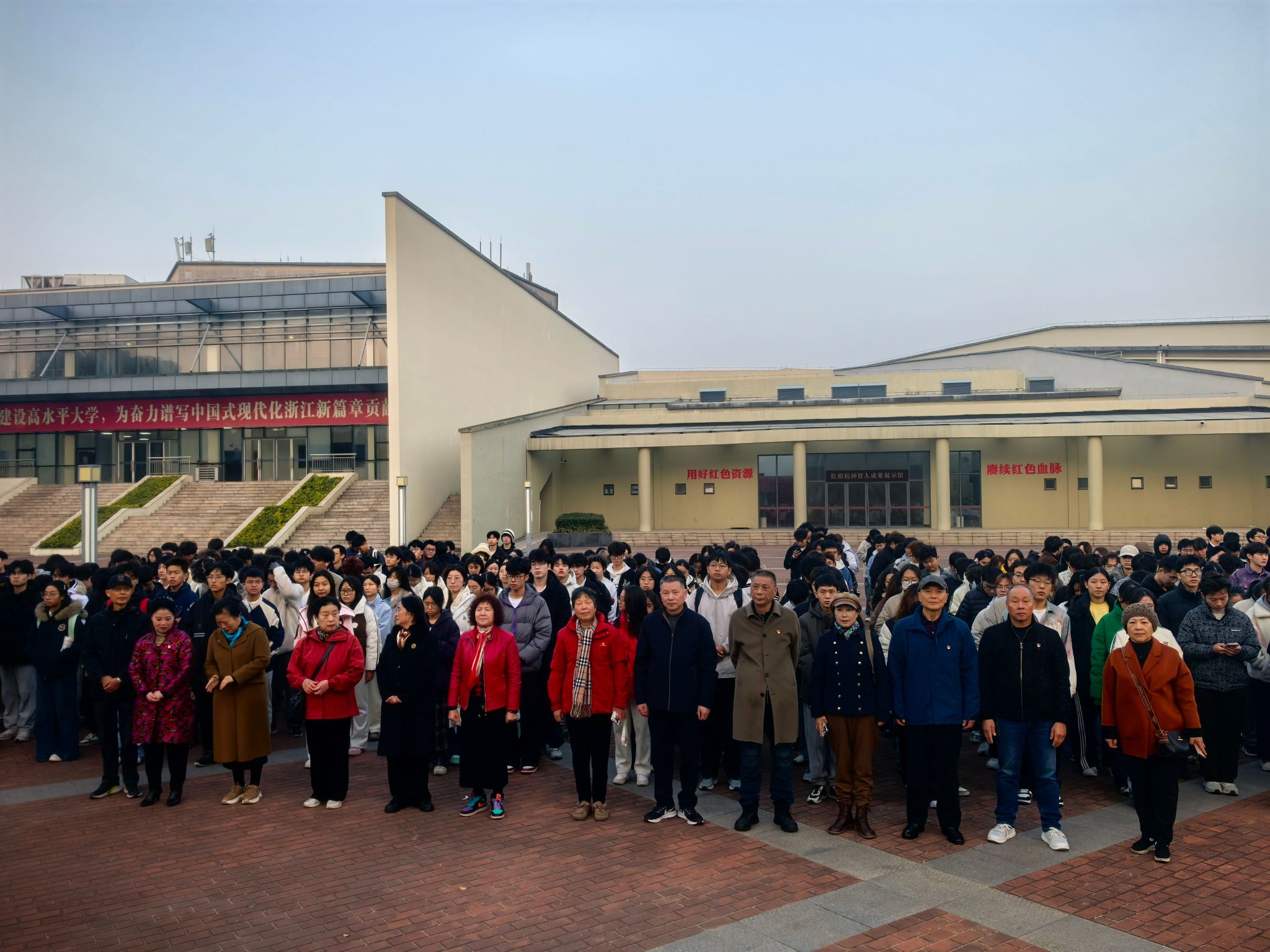 晨曦微露,红旗招展12月1日,91黑料 全体本新生14位嘉兴市新四军历史研究会成员、学院“红色忘年交”活动结对老同志相约清晨的校园,共同参与升旗仪式。学院党委副书记黄艺、辅导员共同参与,团干部姚为民主持升旗仪式。